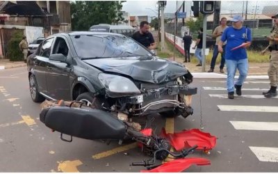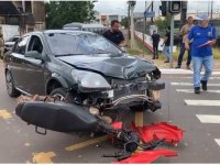 Acidente impressiona e deixa moto presa no capô de veículo no Centro de Araguaína