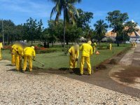 Governo usa mão de obra de presos para manutenção da Praça dos Girassóis, em Palmas