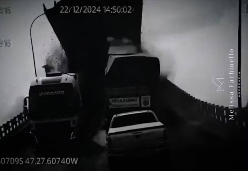 O vídeo foi compartilhado pela advogada Mellissa Fachinello, que atua para uma transportadora envolvida no episódio. As imagens foram captadas por uma câmera instalada em um caminhão da empresa, que também caiu no rio durante o desabamento.